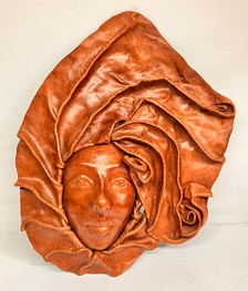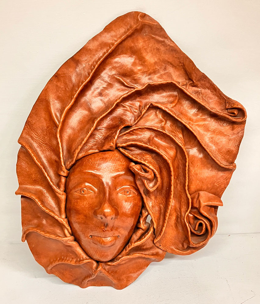 3-D FEMALE FACE LEATHER SCULPTURE