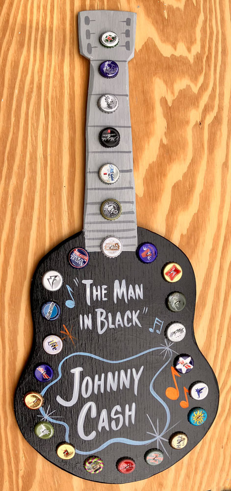 TRIMMED W/ COLORFUL BEER BOTTLE CAPS